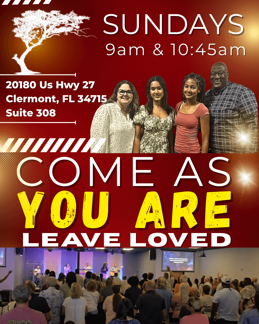 We have two services to choose from on Sunday’s, 9am and 10:45am. Our address is 20180 US Hwy 27, Clermont, Fl 34715 / Suite 308 is where you enter the facility. We look forward to seeing you this Sunday!